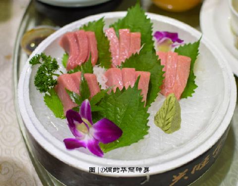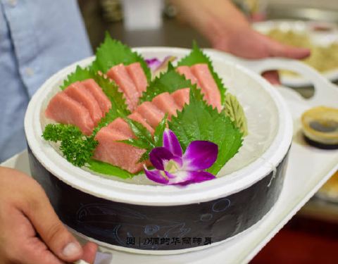 - 店里还非常大方的切了一大盆的金枪鱼供众多食客一饱口福!看来大家都和我一样爱吃美食!肉质紧实、鲜甜