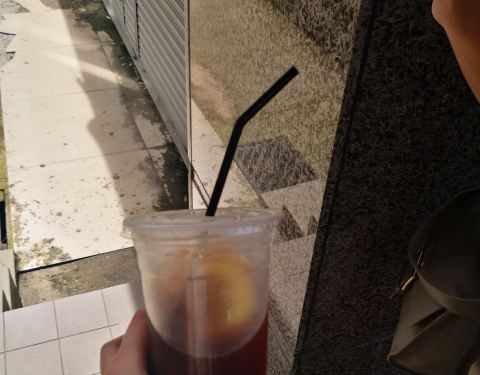 好多好多人都会在这里买奶茶和咖啡,这里的奶茶和咖啡都是小瓶装的,柠檬茶是放在普通饮料杯的,我们...