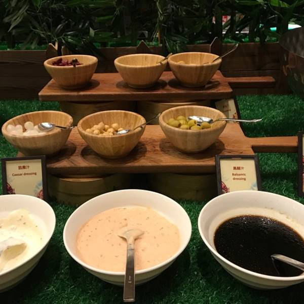 整体布置的还不错。整体来说风景不错,就是东西种类少了点。希尔顿的酒店自助,团购买的是138