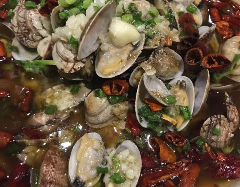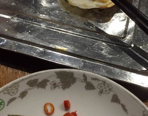 人气不是一般的旺,6点到,店堂里面已经快坐满了。味道很好,就是热热热…… 首推年糕,造型难看了些,但我喜欢,洒些辣椒粉跟好…… 韭菜,考的很嫩…… 还有大虾、鸡翅中、鸡翅尖、牛板筋、茄子、猪脑、贡丸、...人气不是一般的旺,6点到,店堂里面已经快坐满了。味道很好,就是热热热…… 首推年糕,造型难看了些,但我喜欢,洒些辣椒粉跟好…… 韭菜,考的很嫩…… 还有大虾、鸡翅中、鸡翅尖、牛板筋、茄子、猪脑、贡丸、金针菇、日本豆腐、花甲、猪蹄、面包片