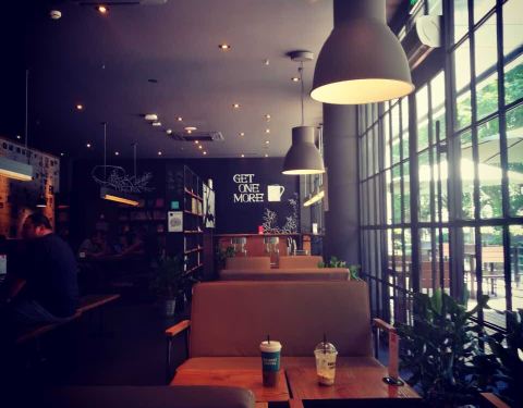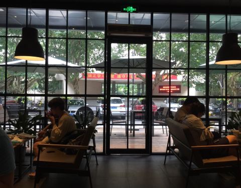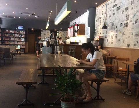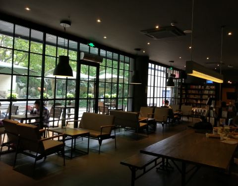 店面很大环境特别好,冷气足,安静,有wifi,还有很多书可以借阅,窗口位采光好也有户外座位