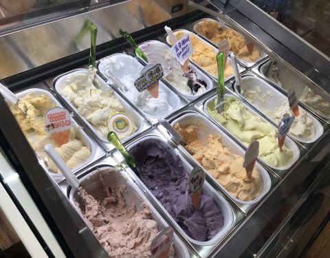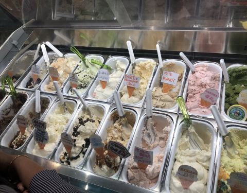 - 可以试吃,服务员超级nice,选择两个球35mop,冲绳盐味和杏仁豆腐,好吃