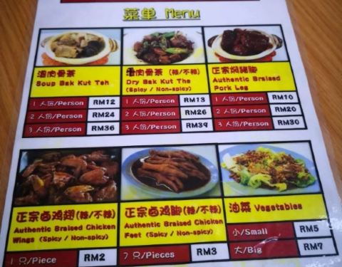 古早味肉骨茶 地址: 槟城乔治镇汕头街64号F(月萍豆芽鸡隔壁) 肉骨茶是这里的招牌菜,的确很好吃,胡椒味适中,药材味不浓,里面有粉肠排骨猪肚,炖得火候刚好,肉不会烂也不会柴,汤是所有精华的所在,吃了肉,再喝汤,补充体力一级棒。还有一种是干肉骨茶,没有汤的,类似我国的啫啫煲吧,我个人觉得湿肉骨茶好吃很多。虾酱炒通菜是亮点,因为虾酱是老板自制的,味道独特鲜美,咸淡适中,完全把普通的通菜提升到一个更高的层次,加点辣椒好吃到没朋友,完胜宅男女神老*妈,肉食控的我都忍不住再点一份,为了这个虾酱差点就要舔碟子了。 爱玉冰是一种糖水,用来解渴很不错,里面有柠檬和冰粉,糖浆,酸甜适中,老少咸宜。薏米水健康有益,还有古來佬豆花,听说特别滑特别有豆香,但是我由于太饱没有试,听说这个古來佬豆花很出名,大家可以试试。
