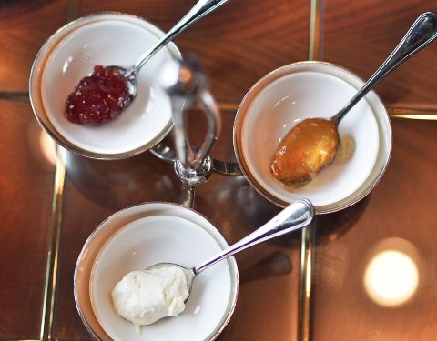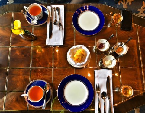 丽思卡尔顿的大堂吧设在三楼,挑高的楼层,大气的装饰,无一不彰显其品味。看到一款高尔夫皇帝 阿诺帕尔默冰茶,冰滴式的,口感小酸甜,全球都在怀念他,以茶向他致敬!晚间还有来自阿根廷歌手驻唱,能弹能唱也是厉害了的一对。 每个月都有应季的下午茶供应,菜单是高贵兰封面,本月名曰”柠檬香橙下午茶”,围绕lemon和citrus两个元素展开,很喜欢酸酸甜甜的感觉,似乎让味蕾在这燥热的七月又有了没有疰夏的理由。 餐具逼格很高,用的是蓝色带花纹的Wedgwood的高档骨瓷,同样的茶壶也是。茶从特选茶类中挑了一款波本香草红茶,喝了一口是很熟悉的味道,以前买过川宁的牌子。不过这家倒是都用的新加坡TWG牌子,档次也相当可以。南非红灌木茶加上香草的配方调和而成的茶,本人还是比较喜欢,很温和。 先来司康饼两枚,原味和提子味,搭配鲜奶油、蓝莓酱、香橙酱,还不错吃,喜欢把鲜奶油嵌在当中吃,或者层叠果酱和鲜奶油让口感更馥郁! 三层式的下午茶有甜点也有咸点,搭配着来,颜好味道也不错,很安娜.罗塞尔。 甜品里包含了柠檬芝士蛋糕,一层芝士特别绵密;柠檬树莓马卡隆,甜的不会特别夸张,用了多小雏菊点缀有点Marc Jacobs的意思。分层次的香橙意式奶冻清甜可口;还有柠檬拿破酥,酥皮做的不错,上面的柠檬呈现绿色,很透着点清凉之感;柠檬蛋白奶油塔和橙味白巧克力慕斯mini size,可爱的让人不忍下嘴,光给他们拍照留念就好一会~ 相对于甜点更偏好咸点,大概是内心对于卡路里还是有点在意。咸点中颜值最高的是鹅肝荔枝慕斯配树莓啫喱,露出洁白的荔枝果肉,当中掏空镶嵌了口感细腻的鹅肝荔枝慕斯,吃起来不腻还因为是搭配的了酸甜口感的berry;明虾鳄梨柠檬蟹籽卷,食材我都喜欢,蟹籽在口中爆浆的感觉很好;风干番茄洋葱脆片很像开胃小小食,一个一个的pastry;帕尔玛火腿搭配了水蜜桃,比起蜜瓜更多了一份香味;三明治里面吃到了brie cheese,混搭了开心果杏酱,好次。当然我是先吃咸的再吃甜的。 去的那几天正好赶上台风季,下雨就跟小孩似的,时晴时雨,无论什么天气,在酒店高上洋的环境下跟朋友聊天喝下午茶,心里总是有着灿烂的小太阳,这也许也是我喜欢afternoon tea的原因之一吧。