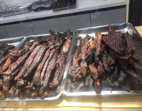 香香香!现烤的牛肉干!一出炉就会排着长长的队伍!开始还很奇怪,这牛肉干也不能当饭吃,只能当个零食呀,而且价格小贵啊,还有这么多人买呢?!原来因为真香,真好吃!牙口好的可以选硬点的牛肉干,牙口不好的,就选软点的牛肉干,肥瘦相间的,更好吃。