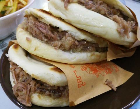 肉夹馍挺好吃的,味道可以,肉弄得挺碎的,好吃