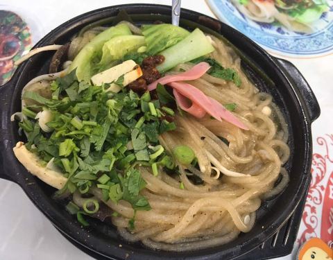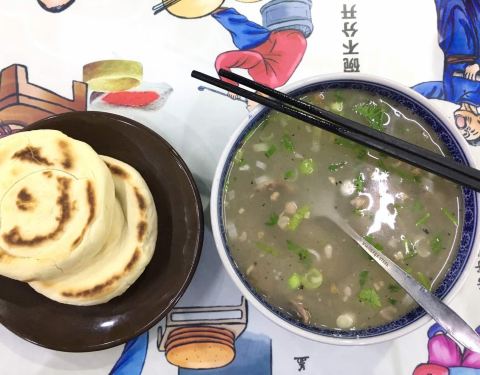 看到西安两个字才进来的,羊肉泡馍居然28元一份!让我这个在西北生活了几年的人妥妥的吃不起!点了份羊肉汤16元,加2个白饼,每个饼2元…汤底的粉丝太硬,汤味尚可…