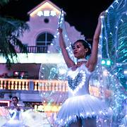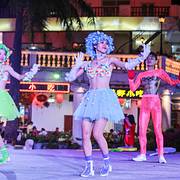 来到门口,演员们已经在热舞欢迎大家的到来。
