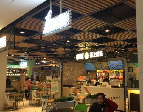 一点点是奶茶网红店,这里在人流集中的中午也是排队很长,可能因为商场地处金桥,周围有很多的工厂吧。其他时段的人就不是很多了。