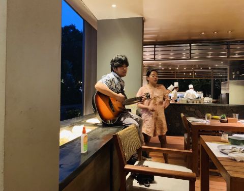餐厅简约大气,有沙滩、灯串、小木桌,营造出浪漫的巴厘岛风情,还有驻唱可以自己点歌,氛围极好。餐厅出品…