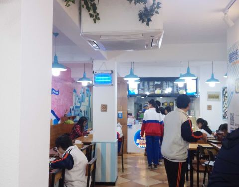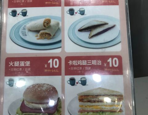 店铺干净装饰的很舒服那种,吃的种类特别多,中餐西餐都有,蛋饼和三明治都好吃,下次还会来的