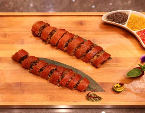宸洲洲际二楼的润祥中餐厅,主打粤菜茶点,菜品接受度广,很适合家人朋友聚餐,亦或者上午宴请。菜品的出品控制严格,火候也是恰到好处,精湛厨艺加上考究的食材,再配上奢华气派的环境,极致的用餐体验,已然是种轻奢的享受。 珍馐美馔正逐渐成为奢华酒店里的标配,既能在酒店里住的舒心,享受到尊贵的服务,又能品尝到惊艳的美食,简直一举多得。 招牌推荐 | 火焰客家焗和田鸡 · 小黄鸭拼网红兔#宸洲洲际,定义新奢华#