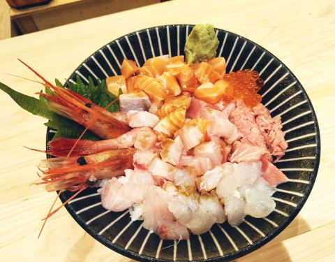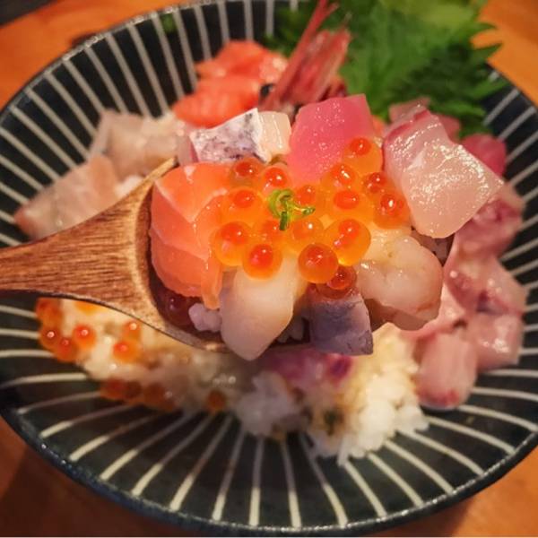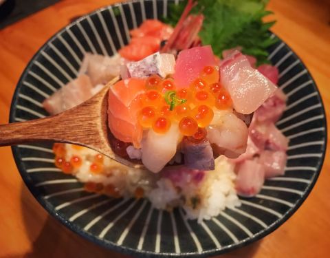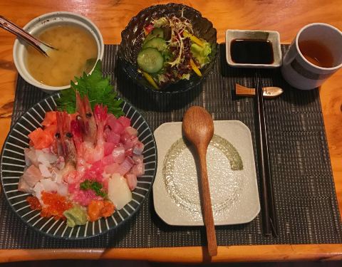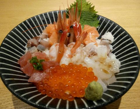 「海鲜刺身丼饭」刺身的量和种类都很多,而且新鲜,特别是甜虾,口感超好。整体空间很大,还有二楼