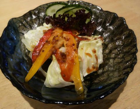【櫻煮和食日本料理】位於📍篔簹路西堤別墅1號A119號,離我家和單位都不遠,算是一家評價很好的高級日料店了。前兩天突然想吃點沙拉🥗清清腸胃,就點了它家的北海道蟹柳時蔬輕食,搭配🈶胡麻醬和油醋汁兩種醬料,配送到的時候就是有一點點灑漏出來到盒子上,不影響使用。只蘸了油醋汁,味道還不錯吧。