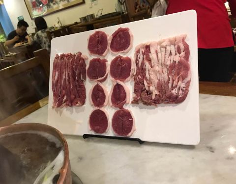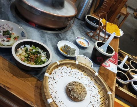 因为错过饭点去的,所以就没提前定做,去的时候人不多,正好不吵闹。点餐是在平板电脑上点的,比较麻烦。吃火锅是老火锅,吃起来一般般吧,主要是锅底贵。
