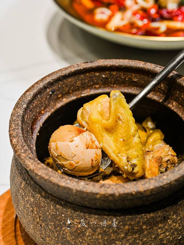 老板强推的古法土灶盐焖鸡,一上桌就飘香四溢,是真的一整个土灶端上来,土鸡用筷一夹就散开,鸡肉入味又嫩。不过最惊喜的应该是藏在下面的鸡蛋,蛋黄和蛋白都带着鸡汁,有点好吃哦~