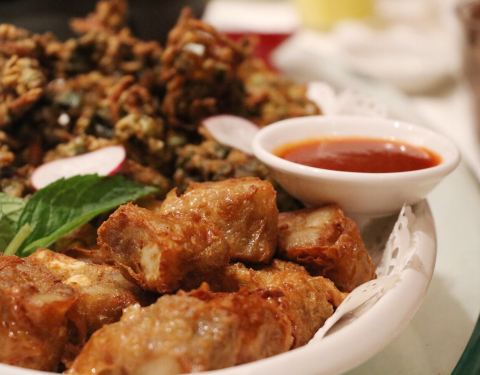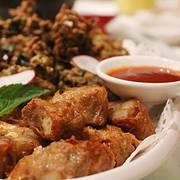 - 炸的酥脆的海鲜卷,搭配新鲜水果,口感很清新开胃。这样的地方,请客聚餐都很棒,长面子还不破费,简直完美