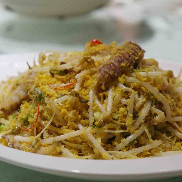 桂花虾姑柳,手残星人再也不用担心剥虾姑皮了,搭配绿豆芽、鸡蛋一起炒口感也十分清新,有种小家碧玉的灵秀之感。