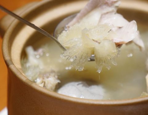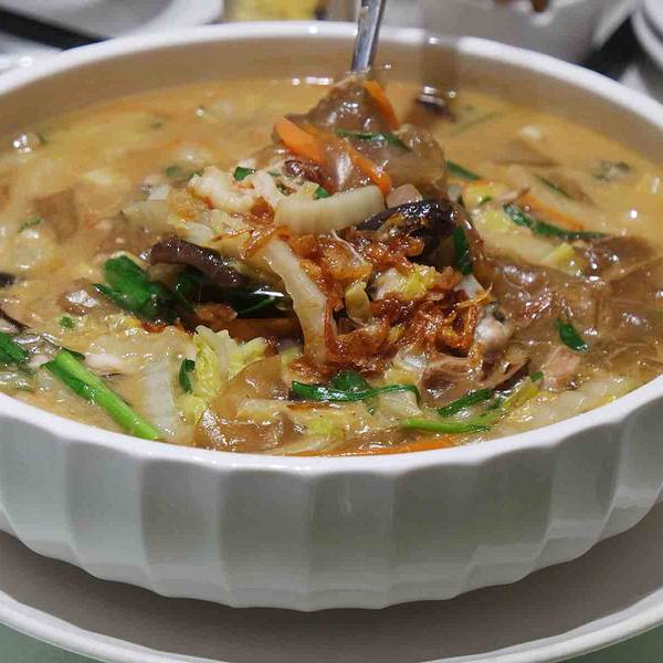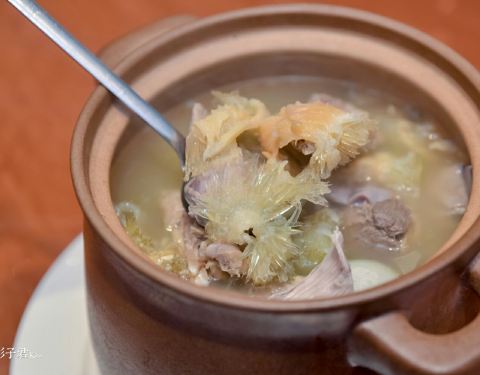沙葱须炖猪四宝,还是看到沙葱须的菜品,这道汤也很滋补,沙葱还有驱寒、润肺的作用,汤不油不腻,喝完很暖胃~