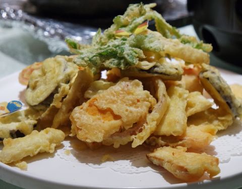 金牌果蔬典型日式天妇罗的做法,地瓜、茄子、芋头裹粉不会很厚,油温把控的也到位,没有多余的油腻感
