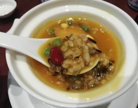 闽菜汇聚了山珍与海味,老少咸宜。【鼎宴】的沙律海鲜卷开启了晚餐,炸的酥脆的海鲜卷,搭配新鲜水果,口感很清新。沙虫、小旺螺、菜粿等小吃,特别有闽南菜的风味。海捞猪手深得我心,颇有四川名菜老妈蹄花的样...闽菜汇聚了山珍与海味,老少咸宜。【鼎宴】的沙律海鲜卷开启了晚餐,炸的酥脆的海鲜卷,搭配新鲜水果,口感很清新。沙虫、小旺螺、菜粿等小吃,特别有闽南菜的风味。海捞猪手深得我心,颇有四川名菜老妈蹄花的样子。一般人吃生蚝都是烤的或者生吃,其实原汁焗的生蚝更鲜美。蚝仔做饭,竟也好吃,选用同安的珠蚝,个头不大颗颗饱满,放在咸饭里更添了几分鲜味。龙胆鱼加入了小黄椒和蒜蓉,算是比较新奇,但是味道也不赖。