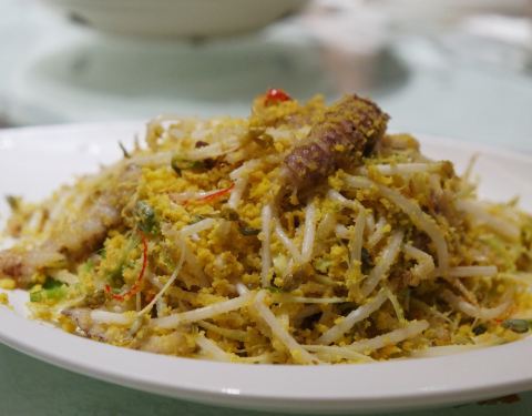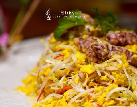 特别是绿豆芽鸡蛋为主撩的桂花虾菇柳,爽脆、弹牙、滑润的多重口感,十分有灵气