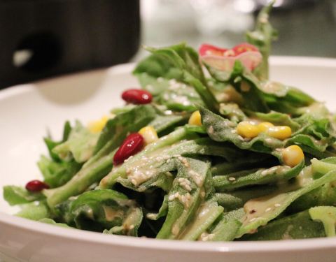 南极冰草,仔细看茎上亮晶晶的真好似冰晶,颜色翠绿嚼起来脆生生的,比起其他蔬菜类真是棒太多了,真是做沙拉的不二之选,冰草和焙煎芝麻酱很配哦,清爽又不会有负担。