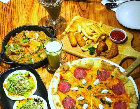 墨鱼面味道有点淡。。牛排味道也很一般。奶油酥皮蘑菇汤。。味道也很淡。。。披萨还行。鸡翅不错