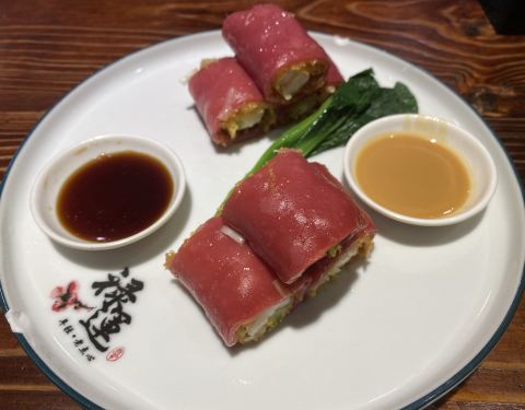 🍂陈皮牛肉肠粉:不知道是陈皮太重还是牛肉味太重,这个味道不太吃的惯,感觉有些臊味,而且太大了,很腻🌚