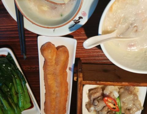 农历新年那段时间抢了一份橙V福利,赶在了最后一天有效期的时候来到了体育西路附近的这一家总店用餐。餐厅位于天河南一路小区里面,是广州首家内街小区的粤式茶点餐厅,地铁一、三号线到体育西路站,按照点评上面的导航指引走就行。餐厅比较残旧了,感觉年代久远,很久没有装修的样子,需要上二楼,有楼梯和电梯,楼梯很窄,不过还是建议走楼梯吧。 这里全天都是吃粤式茶点的,就是老广们所说的一盅两件,餐纸上面标满了很多点心,每一款都有它的特色,有经典款,也有新派点心。我的是套餐,很换算的价格,双人餐非常丰富,价格才是70多元,打包需要收费。点心都是即点即蒸,热乎乎,很新鲜。 {虾饺},一笼是三个,个头中等,虾饺应该是喝茶必点的点心之一,里面虾仁挺多的,比较爽口,皮很薄,轻轻夹起来就有点裂开了,容易烂。 {脆皮有机红米肠},一口一块,大小刚刚好,外皮有点黏黏的嚼劲,里面是脆脆的口感,虾仁也蛮多的,吃起来又脆又爽口,可以蘸一点配好的酱料,或者是花生酱,不知道为什么配花生酱,我自己是没有这样的吃法。 {咸香鸡丝鱼茸粥},一碗很大的分量,分装到小碗里,都有3-4碗了吧。下的配料挺多的,微咸的鸡丝,配上鱼茸,还有丝瓜里,清清淡淡的,口味不错。