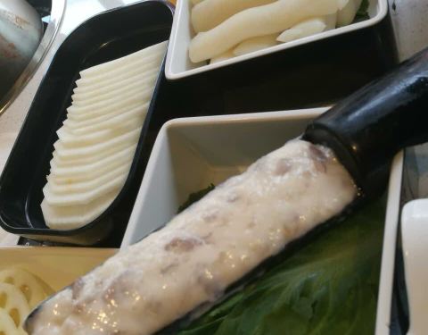 两人份,肉的分量不错,不过可惜没有海鲜酱。丸子的料很足,价格和质量确实成正比。