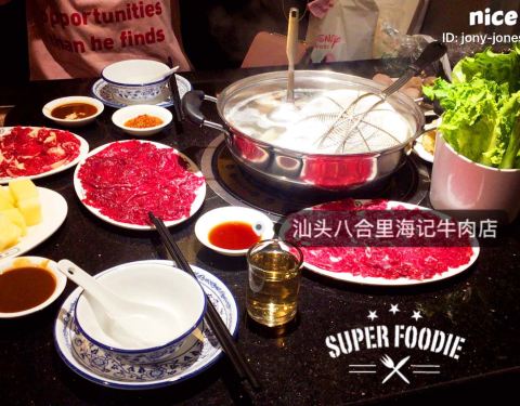 八合里海记牛肉店,这里的生意非常火爆,无论是哪一家分店,每天都必须排长队,等待成了家常便饭。这里的服务态度很不错,店内环境也好,有两层,最喜欢他家的手锤生牛肉丸,据说是每天现打的,十分q弹,真材实料...八合里海记牛肉店,这里的生意非常火爆,无论是哪一家分店,每天都必须排长队,等待成了家常便饭。这里的服务态度很不错,店内环境也好,有两层,最喜欢他家的手锤生牛肉丸,据说是每天现打的,十分q弹,真材实料好吃。还有嫩肉,五花趾,匙肉,牛朴肉等等,一种肉品都是新鲜的,口味非常棒
