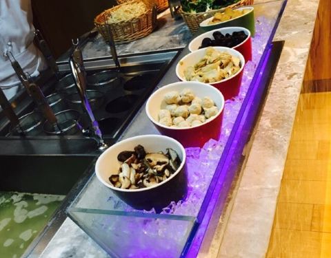 很令我失望的自助餐, 完全比不上东钱湖的希尔顿, 不知道是怎么有这个名字的。 东西很少有新鲜的, 鱼啊虾啊都不好吃, 甜品也没一般蛋糕店好吃, 唯一稍好吃的就是冰淇淋, 虽然不是哈根达斯的, 但是有个奥利奥口味挺让我难忘的。 下次应该不会再来了, 除非等他口碑再好一点。 希望罗蒙加油把这家店弄好一点, 周围环境是不错的, 对着湖吃饭心情还可以。 还有饮料种类也不多, 水果希望能有高档点的东西, 以后应该还有很大的进步空间。