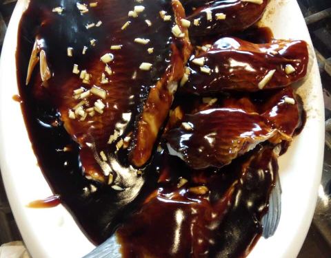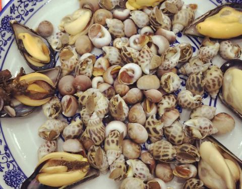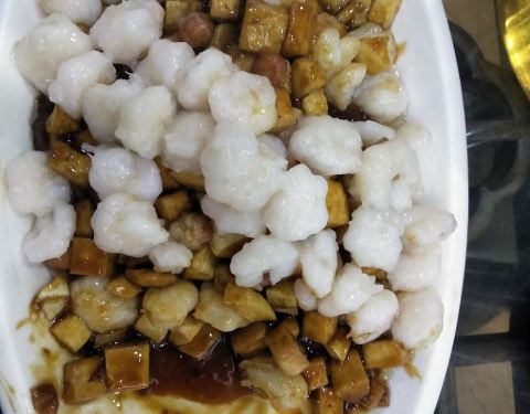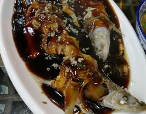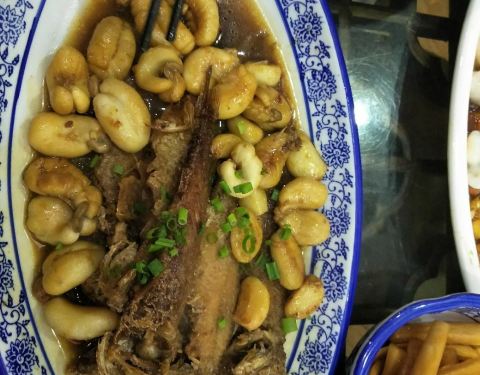 墨鱼蛋炒黄鱼。酱丁虾仁。绿豆芽炒油条。萝卜干儿。除了酱丁虾仁有点咸之外,其余三个菜味道都很好。有机会下次再去品尝其他的菜肴咯。