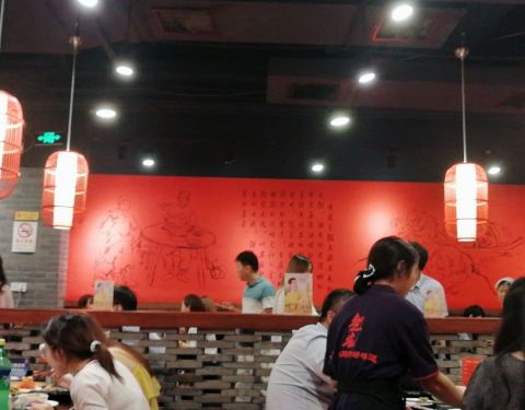 这家都是八仙桌 桌子大 宽,热气不会太近 6点到无需排队 锅底选鸳鸯 没有选九宫格都是麻辣 没有什么需要煮很久的,索性鸳鸯锅就好,煮最久的适合放在九宫格的当中那一格 分量都是小份,感觉可以吃很多种类 也不用担心浪费,牛羊肉的价格很实在25-38元不等,好多肉比较有劲 盘子特别长,推荐,也就68元 大刀老肉选了半份,因为看见大家褒贬不一,吃下来觉得半份刚好,4-5片 每一片都好厚的说,瘦肉为主 牛蛙一份15元 但是真的不如哥老关的,这个牛蛙煮久了 肉就柴了 虾滑 兑的水或者面粉有点多,导致煮熟的虾滑都没有黏连成团……很松散的口感 年糕很好吃! 调料感觉芝麻酱不出彩 但是他们家干料比较多 这点也算不一样 自助水果以外 还有龙虾片,但是由于是火锅 湿气大,龙虾片都不脆了 建议换品种 还有自助冰淇淋,结账后还送喷雾除味,人均估计不多~性价比高~