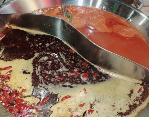 店里的装修很重庆,位子坐得挺舒服的。 服务态度不错的,特别是一个年纪比较大的姐姐,很亲切~ 鸳鸯锅选择了番茄和麻辣,番茄锅里还有午餐肉哈~ 「十秒绝味牛肉」太辣了,调味盖过了原本的牛肉味,很普通。 [爱心]「鸭血」最近很爱吃鸭血,放在麻辣锅里味道太棒了! 「熬家现炸酥肉」酥肉是亮点,肉很紧致,炸得不错,就是缺了调味粉。 ✨其他的菜就是中规中矩的蔬菜啦~ ‼️送的冰粉一点味道都没有… ⭐️自助调味+自助瓜瓜+自助小食+自制冰淇淋一共八元~ 最后消费200出头,没有被反撸很多~