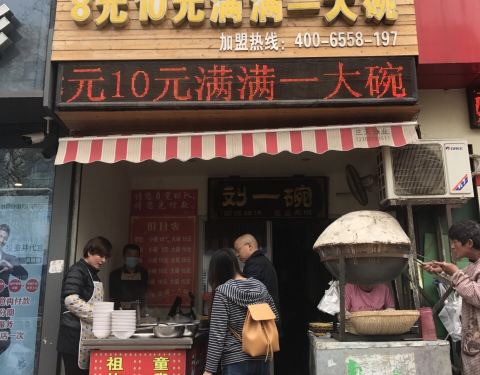 刘一碗羊肚在济南市区买了不少加盟店,这家是其中一家,靠着经二路华联很近。 吃他家东西真得会点才行, 羊肚和羊肠做的比较好,浇上汤来一碗,再配个刚出锅的吊炉烧饼,美滋滋的一顿午餐。 羊肉的差点事,肉太死,膻味也大,非常不推荐,这个可以给差评。 吊炉烧饼是近期吃的较好的,酥脆可口,供不应求,交上钱要记得第一时间去抢出炉的烧饼,不然有可能被别人拿走。 离得不远的话可以去尝尝