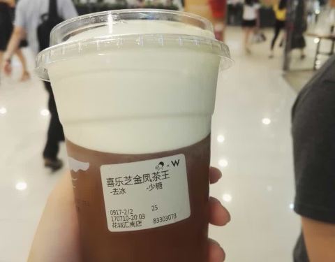 奶茶应该是调好的,不可以按照自己的口味定制,幸好奶茶不会太甜!茶味还可以!店铺的装修很有香港的味道