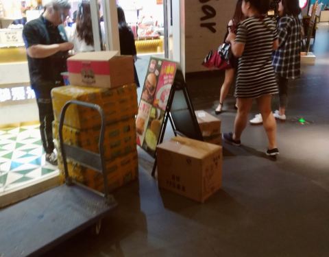 这家店位于花城汇中区和北区的交界处,店铺面积算是比较大,里面设有座位,店里主要销售各式港式小吃饮品,由于周边的办公区比较多,这家店的生意特别是外卖生意相当不错。