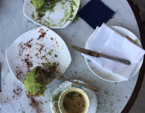 在大堂吧吃了一脸“脏” 希尔顿酒店35层大堂吧是济南五星级酒店中首个推出“脏脏包”的~那天济南的天出奇的蓝,35层的高空中俯瞰济南的南部风景格外清晰~ 一杯豆奶咖啡+脏脏包=一个“脏”到极致的下午茶 【脏脏包】35元/个,下午1点后有售,限量供应,不过可以点到外卖。 也没想到自己第一次吃脏脏包的场景会是这样,裤子,鞋子,手机,咖啡以及我对面朋友的身上都满是可可粉和抹茶粉,可能,大概,这就是脏脏包的有趣之处吧~ 最喜欢巧克力脏脏包,用料很足,表层超厚的可可粉,整体口感不是很甜,内部还算酥软,用刀叉吃是挺困难的,所以一定要用手,吃得满手满脸满世界都脏才算正经吃了一次脏脏包。 抹茶口味的稍有些苦涩,我还是更喜欢巧克力脏脏包~ 很后悔为何没有先把咖啡喝完再吃脏脏包,因为想要喝咖啡的时候发现,咖啡里面已经融合了抹茶粉和可可粉,双手已是绿色和巧克力色的混合色~此时该做的,只有冲向卫生间啦 【豆奶咖啡】 35左右一杯の样子,味道清淡,适合不怎么能喝咖啡的或者下午喝咖啡容易失眠的人。 大堂吧服务态度很好,环境视野极佳,一个巧克力脏脏包真的让我脏到了极点,不过即便吃成了大花脸,也仍然享受这个愉悦的下午~此处木有自拍照,手机当时已被可可粉包围 如果你的朋友一定要来吃脏脏包的话,记得坐得离她远一点,在她下嘴の时候不要惹她笑,除非你也想弄得满身“脏”