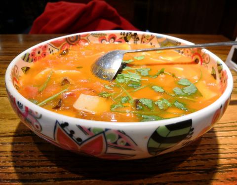 撒拉汤面片:适合冬天吃,暖暖和和的,里面有木耳、洋葱、羊肉、芹菜等,很暖胃,面片软硬程度正合适,口感不错。 干果酸奶:干果不是碎的,全是整个的腰果、杏仁等,干果都很大,吃着特别爽,不是很酸,桌上也贴...撒拉汤面片:适合冬天吃,暖暖和和的,里面有木耳、洋葱、羊肉、芹菜等,很暖胃,面片软硬程度正合适,口感不错。 干果酸奶:干果不是碎的,全是整个的腰果、杏仁等,干果都很大,吃着特别爽,不是很酸,桌上也贴心的放了蜂蜜自助舔加。 特别喜欢他家的餐具,都很漂亮。 唯一缺点就是桌子上擦的不干净,希望能改进。