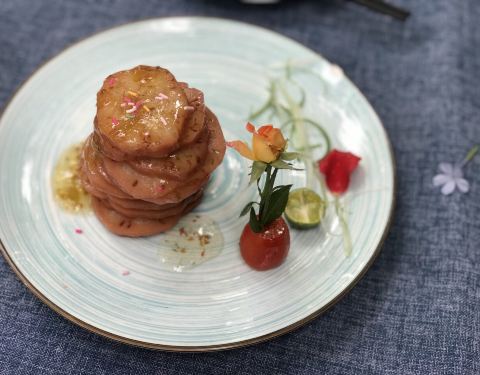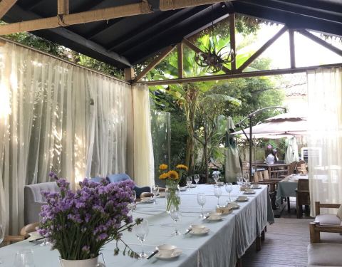 总评: 小店拍某些角度还不错,算是蛮有小资调调的院子。 可惜,经不得细看。 总的来说就是,没有完全脱去农家乐的影子,净化不完全。 必须要有专业设计师整体的完整规划才好呀,不然离网红还有一段距离。 餐食摆拍不够精致,略显俗气,味道普普通通吧,价位不算便宜。 不推荐,但是也没觉得哪儿特别不好,中庸吧。 评分:70分 性价比:❤❤❤ 周末,带着妈妈来三圣乡走一走,可惜太热了,只能就近找一处看起来还不错的院子坐坐,休息一下。 吃了午饭,还是没见太阳有隐退的意思,索性走人回家了哦。 太阳大,气温高,蚊虫还多,这户外的院子坐着也不是想象中那么安逸。 院子最漂亮的地方应该是进门口左手边,那西式风格的户外长餐桌吧,看起来很有偶像剧的feel。 店里最让我觉得像是农家乐的地方,就是室内的大厅用餐区域,太老气了,和外面院子显得完全的格格不入,一下子就把院子小清新的颜值给败光了。 下面我来写写我当天吃的的菜品吧。仅供参考。 【红烧肉】在三催四催过后,终于上桌了。此刻我们已经差不多吃完这一餐了,所以看到那么肥腻的两坨五花肉,实在是有心无力。也就只有我试着尝试了一口,我妈连碰都没碰呢。 不过呢,确实是有些肥腻了,虽然还是挺软糯的,可惜味道稍微欠缺了些。 【烂肉水晶粉】这个不错,本身我对粉条就比较偏爱,而这个石锅水晶粉的调味很像火锅底料,所以算是重口味的下饭菜,水晶粉煮的软硬适中,也特别吸味。 【糯米藕】冷冰冰的就上桌了,糯米也有些硬,淋在表面的糖桂花蜜,又甜又腻的,实在是有负我对它期望。 【卤鸭舌】不太喜欢鸭舌,卤味葡萄,而且颜色看起来有些不正常呢?太红了点。 【脆皮豆腐】这个算是招牌菜吧,吃一块还蛮喜欢的,日本嫩豆腐软嫩细腻,外皮炸得脆,勾了汤汁焖煮之后,味道也还挺鲜的。可惜汤汁太过浓腻,多吃两块就闷了。 【豆瓣鱼】这个用的是鲫鱼,我最不喜欢的就是鲫鱼了,虽然肉嫩,但是刺太多,不适合我这种急性子,所以尝了两口我就放弃了。虽然味道确实还可以,酸辣开胃的泡椒豆瓣调味很可口。 恩。好吧,我就是烤那一锅的水晶粉吃饱了的。回家立马啃了2个蛋黄月饼。