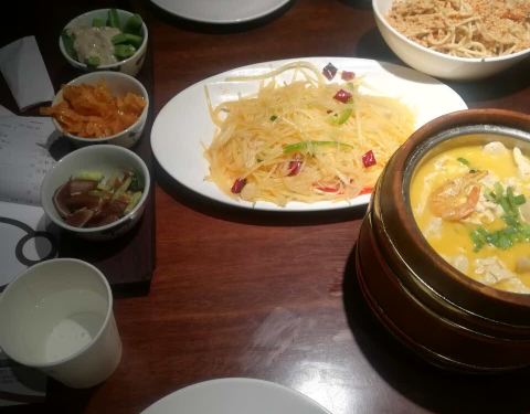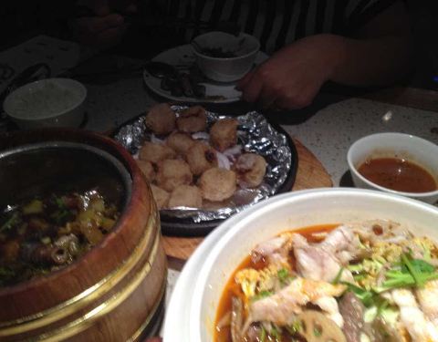 四个人点了十个菜基本都光盘了,一份不会很多,可以多点几个菜,这点很喜欢,三倆好友聚聚也不至于两三个菜就撑着了五点不到就到那了,所以上菜还挺快。小团圆炒饭里边加了几粒年糕口感不错;酸菜鱼酸酸的,汤也很好喝;酥排骨肥中带瘦,很香;菜式挺多,下次再去尝尝别的菜。