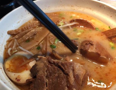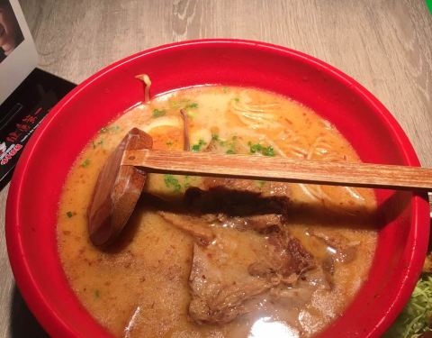 - 汤很浓稠,笋干,肉,糖心蛋也都好吃,只是有些酱料没有溶完一小坨的粘着面,总得来说还不错,服务也还可以