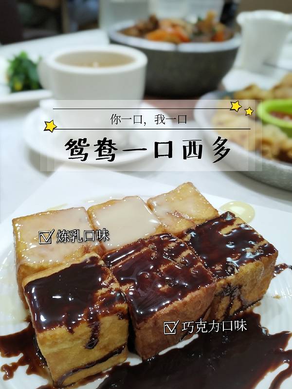 |鸳鸯一口西多^炼乳+巧克力混搭,总有一款是合适的,大人不做选择2个味道😏都吃。巧克力带点苦涩,不爱甜食的建议吃这个;炼乳偏甜,但是奶香味跟西多很搭。