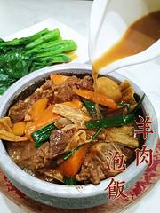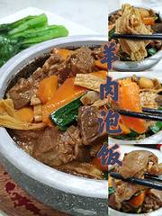 |老楷羊肉泡饭^🐏羊咩咩石锅饭,上桌后再浇酱汁瞬间沸腾,♨️热气腾腾特别好吃。羊肉焖煮🉐很软,还搭配了支竹、胡萝卜🥕、马蹄,荤素搭配💯
