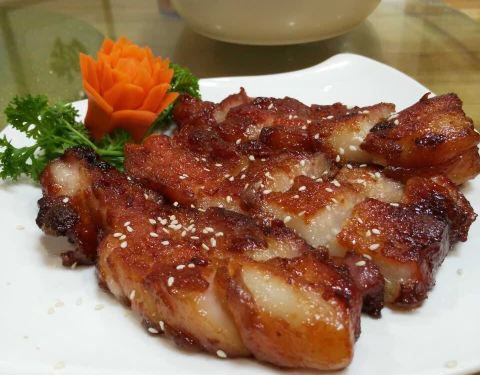 - 天气热了,吃苦瓜下火,好吃。从没有吃过这么美味的叉烧,肥瘦相间,肥而不腻,搅拌一点猪油,实在太美味了