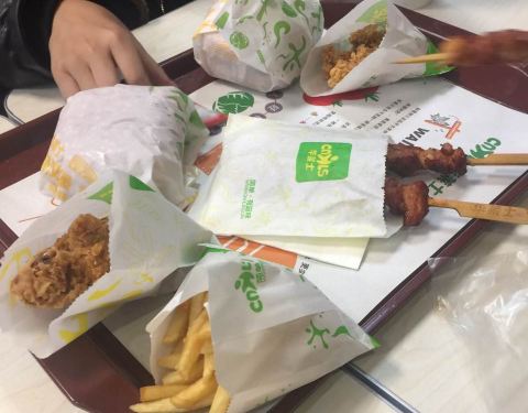 这价格还是可以的。挺实惠的。味道还行般但汉堡包外面的面包不咋样。我就只吃了中间部分反正总结就是还是不错。还可以接受的挺适合下午的时间和朋友一起来打发时间最后鸡翅鸡腿有点太辣了剩余的还行吧
