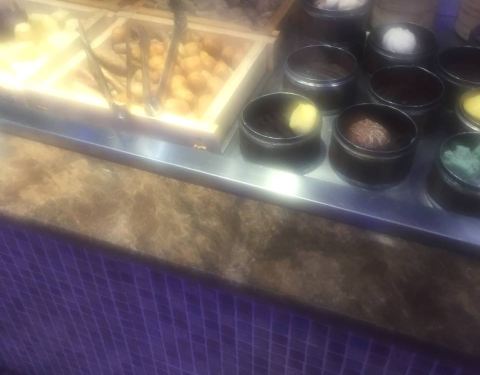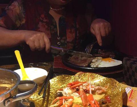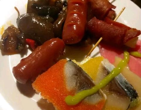 人太多了!菜品种类很多,很吸引人。然后各种甜点,生鱼片,熟食,海鲜有,虾,蟹,扇贝等等,然后,有很多类似生蚝这类的,都是烤熟了自己取,但是,人太多了,都要排队,如果慢了,基本上你就拿不到了。总体感觉,一般般,水果到还可以。