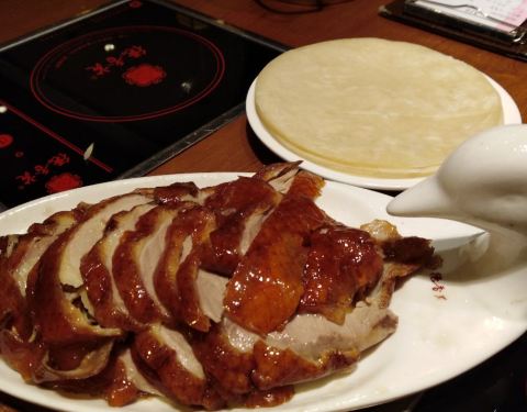 彩色玻璃装饰打造时尚视觉,烤鸭风味独特。